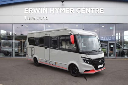 Packed with a highly customised design, this model features the eye-catching Eifel Grey exterior blended with the Carmine Red accents, presenting an overall stunning finish. Additionally, this model includes full Temptation Beige leather upholstery, a 9-speed ZF automatic transmission gearbox, a BBQ gas point, and an awning, making it ideal for those looking to tour all over the continent.