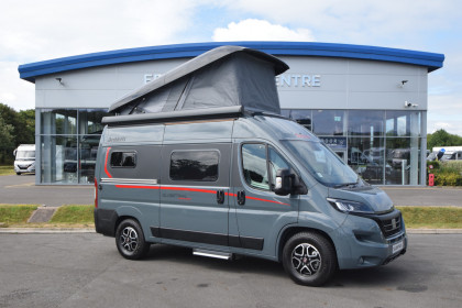 The Dethleffs Globetrail 540 DR is a compact and versatile motorhome perfect for adventurous travellers. It features a pop-top roof, offering an additional sleeping area, making it ideal for families or groups.