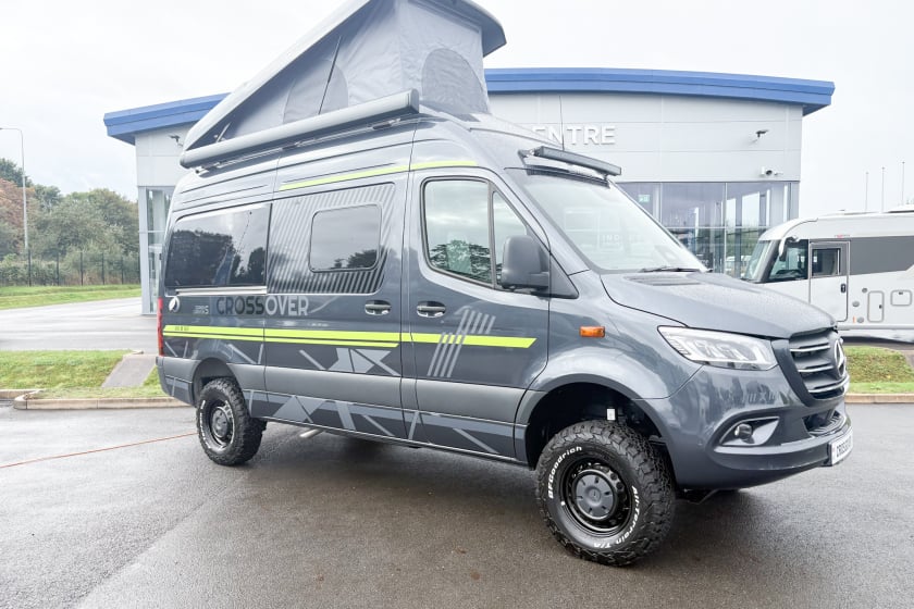 The HYMER Grand Canyon S CrossOver is built for those who want true freedom without compromise. With raised suspension, permanent all-wheel drive and rugged off-road tyres, this camper van takes rough terrain in its stride while keeping every drive refined and comfortable. Its lithium battery system, roof-mounted solar panel, generous water tanks and efficient diesel heating let you stay off-grid for up to ten days, opening the door to adventures well beyond the usual routes. Inside, the CrossOver blends practicality with contemporary style. Ivy Green furniture and warm walnut finishes set a modern tone, while clever storage solutions and multi-level LED lighting make the space both functional and inviting. A well-equipped kitchen and a comfortable rear sleeping area keep daily life simple, and the pop-top roof adds extra berths when you need more room. Smart technology enhances the experience further, with the HYMER Connect app giving you control over lighting, heating and water levels straight from your phone. Details like blackout blinds, mosquito nets, soft-close drawers add comfort and safety in every situation. Finished in Tenorite Grey with bold CrossOver decals and neon green accents, the Grand Canyon S CrossOver makes a statement wherever it goes - a true off-grid sanctuary for those who refuse to settle for ordinary.